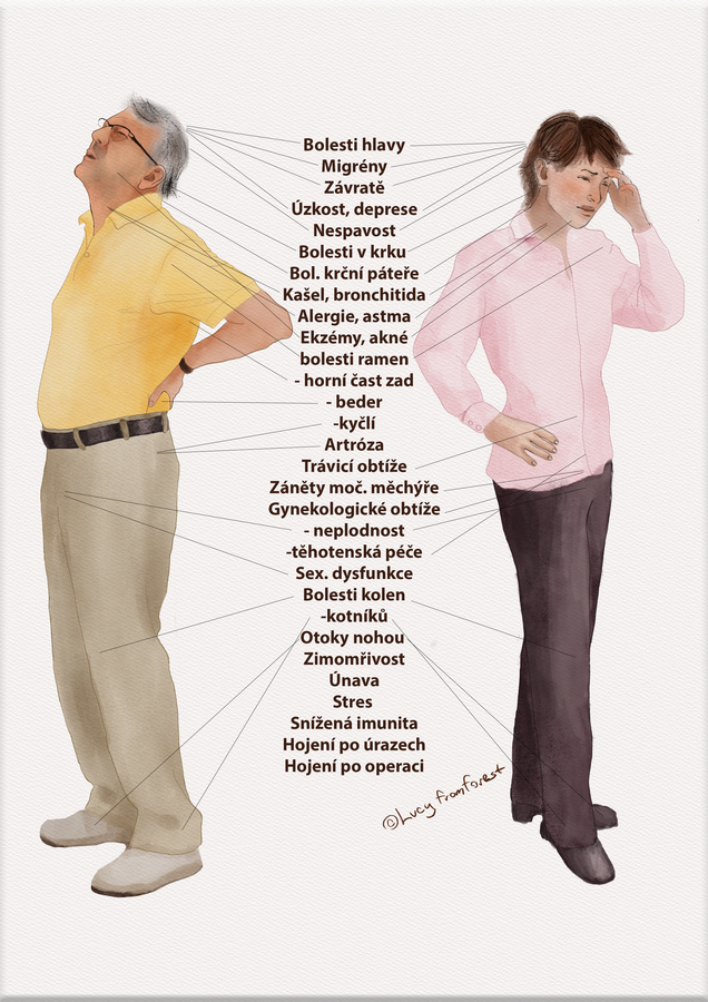 Akupunktura nabízí úlevu a regenerační účinky pro většinu chronických potíží – bolesti krční páteře a zad, ischias, při únavě, bolestech hlavy, obtížích dýchacího a zažívacího ústrojí, při alergiích, při stresu, úzkosti, neplodnosti, vysokém či nízkém krevním tlaku nebo při poruchách spánku. Prevence a léčba pomocí akupunktury spočívá v cíleném ovlivňování organizmu stimulací přesně ohraničených míst na povrchu těla, tzv. aktivních bodů.